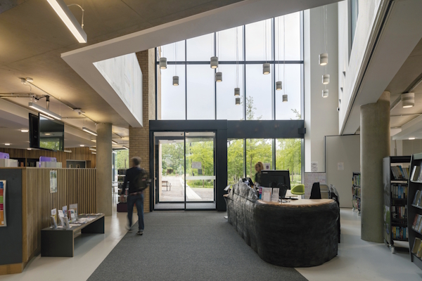 Clay Farm Library is spread across the ground floor and first floor. There is space to browse the shelves and read or work quietly.