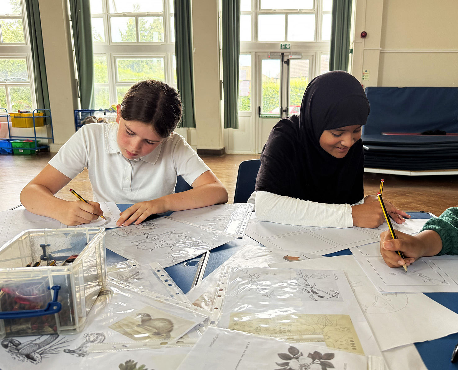 More than 70 children explored the area’s rich identity through themes such as local habitats, Iron Age heritage and historic pathways. Using drawing, design, metal embossing, timber slice illustration, and simple book-making, the pupils created thoughtful and playful artwork that will directly inform the final public art across the site.